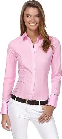 Damen Bluse leicht tailliert 100% Baumwolle bügelleicht Langarm Hemdbluse elegant festlich Kent-Kragen auch für Business und unter Pullover pink 42
