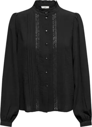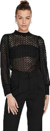 JACQUELINE de YONG JDY Damen Bluse Spitze Rüschen Langarm voluminöser Armschnitt Regular Fit, Farben:Schwarz-2, Größe:36