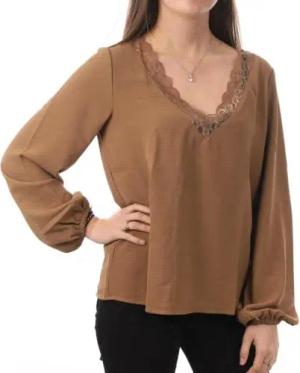 Damen Musselin-Bluse JDYTheis Langarm 15271018 Oxford Tan S