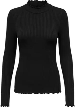 Damen Dünnes Langarm Shirt Basic Rundhals Stehkragen Longsleeve Stretch Oberteil JDYFRANSISKA, Farben:Schwarz, Größe:XS