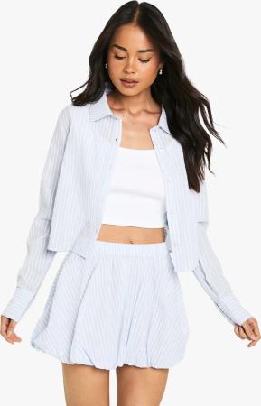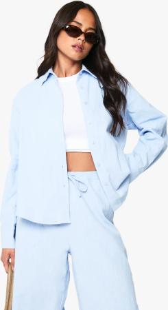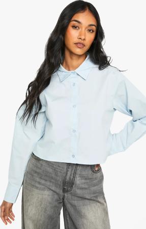 Womens Cotton Poplin Cropped Shirt - Baby Blue - 36, Baby Blue