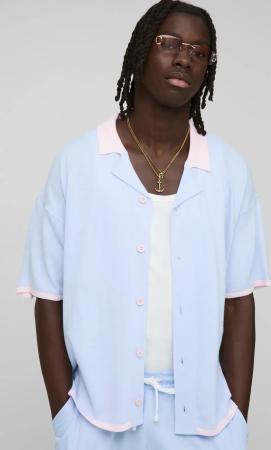 Kurzärmliges Strukturiertes Hemd Mit Streifen - Baby Blue - 36, Baby Blue