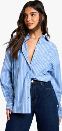 Womens Pinstripe Oversized Shirt - Blue - 36, Blue