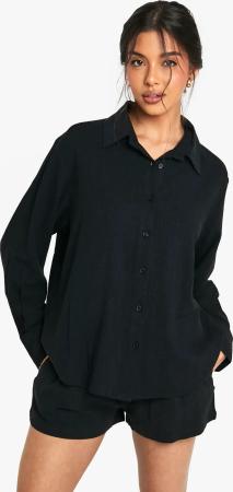 Premium Oversize Leinen-Hemd - Black - 34, Black