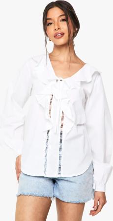 Rüschen-Bluse Mit Cutwork-Detail - White - 36, White