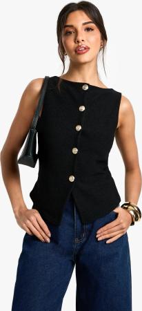 Strukturierte Weste Mit Knopfleiste - Black - 38, Black