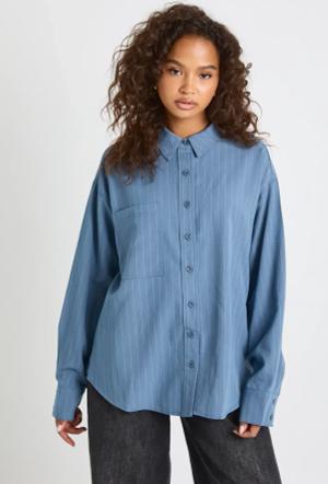 Oversize Hemd Mit Nadelstreifen - Blue - 42, Blue