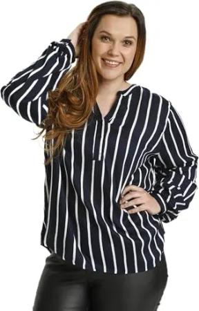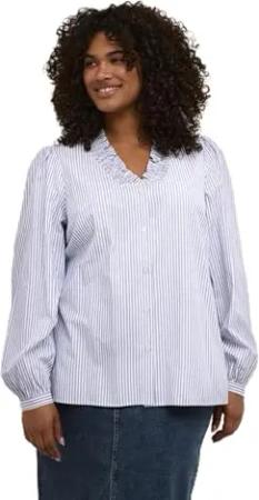 Kaffe CurveWomen's Plus Size Shirt Bluse Striped Oversize V-Neck Long Sleeves, Midnight/Chalk Stripe, 56 Damen