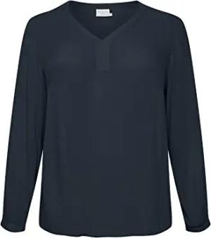 Damen Women's Plus Size Long Sleeves V-Neck Blouse, Midnight Marine, 46