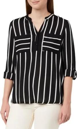 Damen Damenbluse, gestreift, V-Ausschnitt, Lange Ärmel, reguläre Passform, Brusttaschen Bluse, Schwarz/Kreide-Streifen, XS