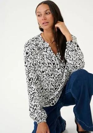 Kurzarm-Bluse KAjanne 36, Chalk/Black Animal 36
