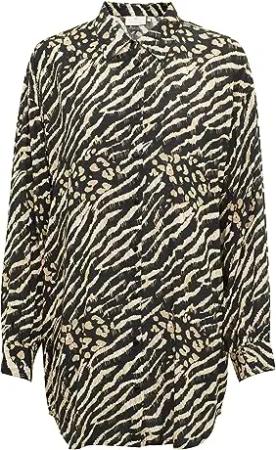 Langarm-Bluse KAsandy 38, Black/Feather Gray Animal 38