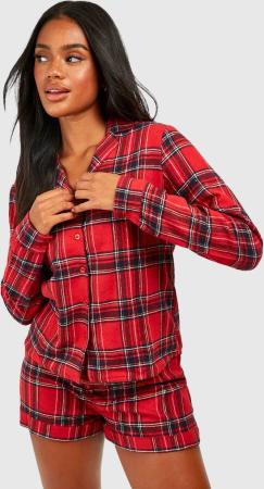 Langärmliges Kariertes Pyjama Shorts-Set - Rot - 34, Rot