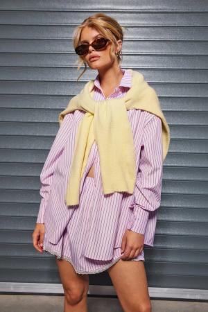 Womens Stripe Oversized Shirt & Scrunchie Set - Pink - 36, Pink
