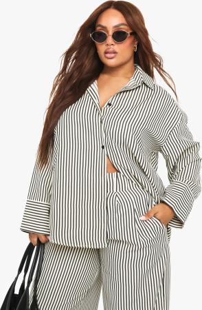 Plus Gestreiftes Hemd Mit Knopfleiste - Black - 44, Black