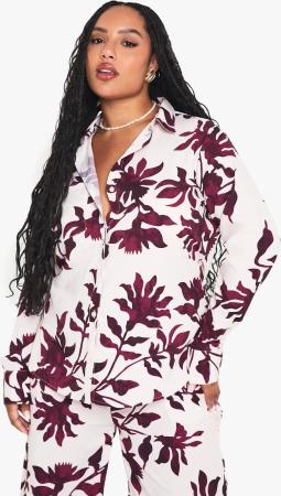 Plus Langärmliges Florales Basic Hemd - Purple - 44, Purple