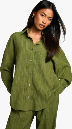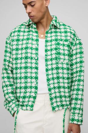 Kariertes Oversize Bouclee-Overshirt - Grün - L, Grün