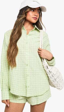 Womens Gingham Drop Shoulder Oversized Shirt - Green - 36, Green