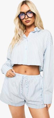 Womens Stripe Seersucker Cropped Shirt - Blue - 36, Blue