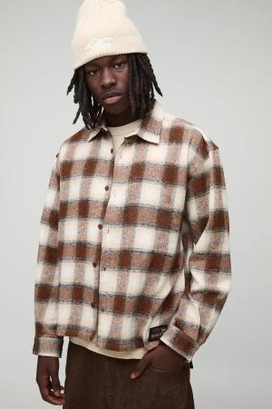 Kariertes Oversize Bouclee-Overshirt - Black - M, Black