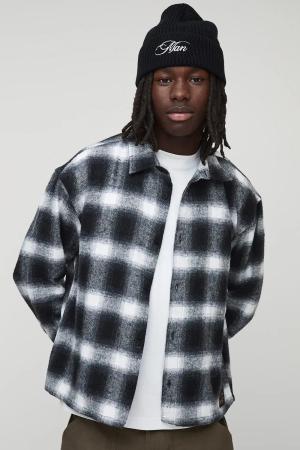 Kariertes Oversize Overshirt - Schwarz - L, Schwarz
