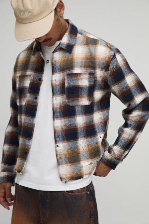 Oversized Boxy Distressed check Check Shirt - Blau - S, Blau