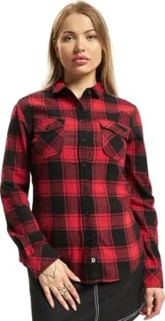 Women Amy Flannel Shirt Long S, Farbe: red/Black, Größe: M
