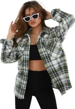 Damen Karierte Hemdjacke mit Teddyfell Roderick Kariert Olivgrün 38