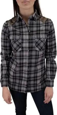 C-Yelena Camicia Damen Blusenhemd Flanell, Farbe:Schwarz, Größe:S