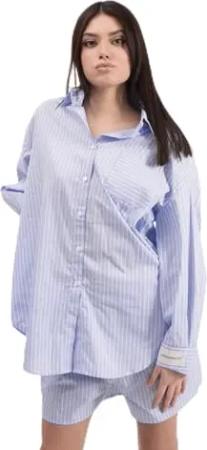 Strukturiertes Gestreiftes Oversize Hemd - Blue - 36, Blue