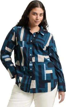 Damen 1049401 Bluse, 38404-Teal Geometric Design, 54