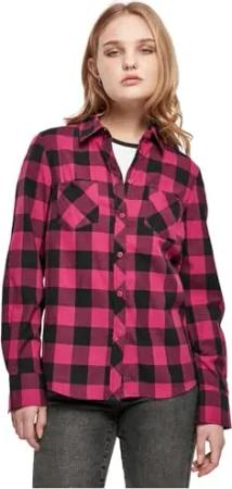 Damen Ladies Turnup Checked Flanell Shirt wildviolet/Black, S