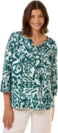 Linen_LI/CV Printed Short Style Blouse Green Lagoon XXL