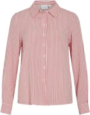 Damen Gestreifte Bluse aus Leinen-Lyocell-Mix Rot, Womenswear-XXL