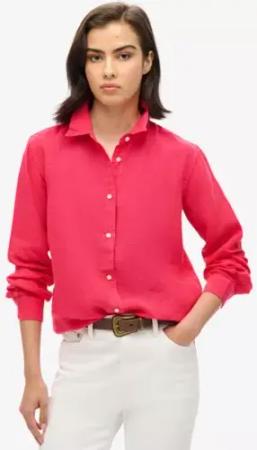 Superdry Damen Lässiges Hemd aus Leinen im Boyfriend-stil Pink - Größe: 38