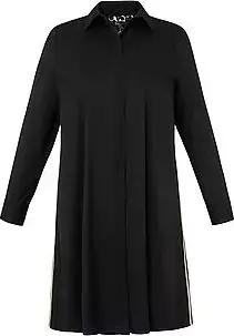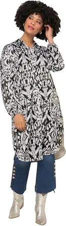Damen große Größen Übergrößen Plus Size Longbluse, Alloverdruck, Hemdkragen, Langarm, Seitenschlitze schwarz 54 830103100-54