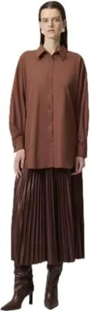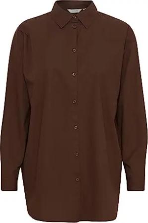 BYGAMZE Damen Langarmshirt Langarmbluse Bluse Hemdbluse mit Stehkragen Langer Schnitt mit Knopfleiste aus 100% Baumwolle Oversize, Größe:36, Farbe:Chicory Coffee (191419)