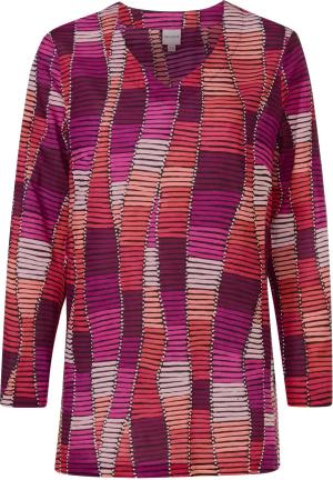 Gemusterte Bluse, lockere Passform, V-Ausschnitt und lange Ärmel., Rot gemustert, 42
