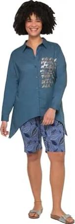 Damen Longbluse Leichtes Longshirt Bluse mit Bündchen & Galonstreifen in Einheitsgröße PM23