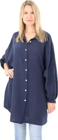 Damen Lange Tunika Musselin Hemdbluse in Einheitsgröße PM50