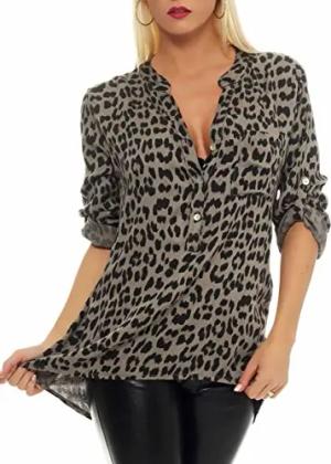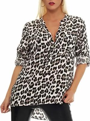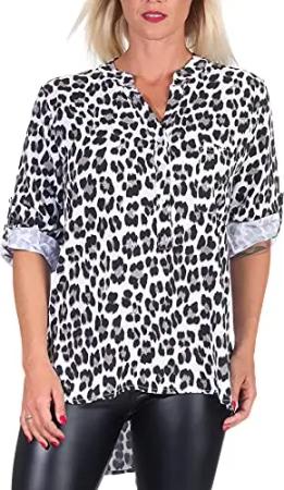 Malito – Unisize Damen Bluse mit Leopardenmuster & ¾ Ärmeln – Animal Print Tunika mit Leo Muster – Elegante Oversize Schlupfbluse 6702 (Weiß | Größe 34-42)