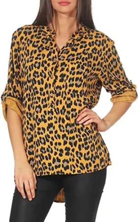 Malito – Unisize Damen Bluse mit Leopardenmuster & ¾ Ärmeln – Animal Print Tunika mit Leo Muster – Elegante Oversize Schlupfbluse 6702 (Dunkelgelb | Größe 34-42)