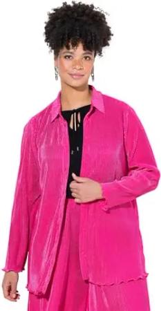 Damen große Größen Übergrößen Plus Size Plissee-Bluse, A-Linie, weiter Langarm hibiskuspink 56 840293510-56