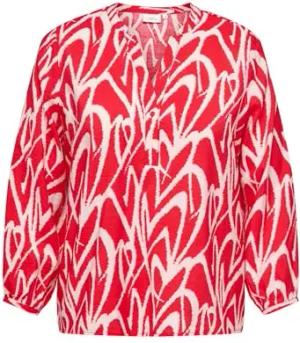 Große Größen: Bluse mit Herz-Alloverprint und 3/4-Ärmeln, rot gemustert, Gr.40-56