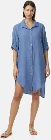 Malito Damen Musselin Bluse - Langarm Blusenhemd - langes Oversize Hemd aus Baumwolle - Long Shirt Strand Cover Up 20914 (dunkelgrün 34-46)