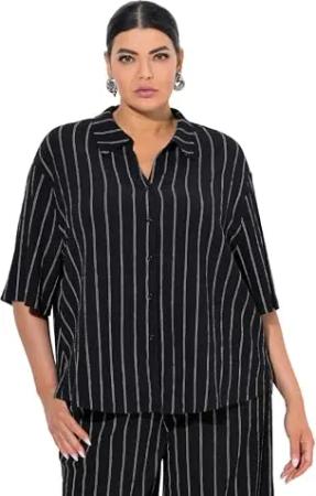 Damen Bluse, Streifenstruktur Shirt, Schwarz, 42-44 EU