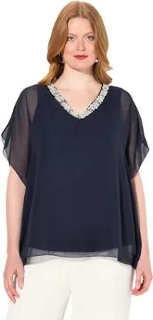 Damen, große Größen, Chiffonbluse mit Beschmückung
