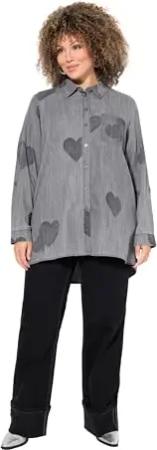 Damen große Größen Übergrößen Plus Size Jeansbluse, Herzen, Hemdkragen, Langarm, Lyocellmix