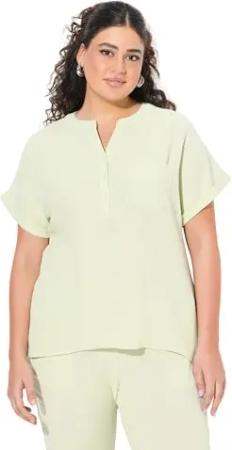 Damen große Größen Übergrößen Plus Size Musselin-Bluse, Oversized, Tunika-Ausschnitt, Halbarm Pistazie 54+ 827543408-54+