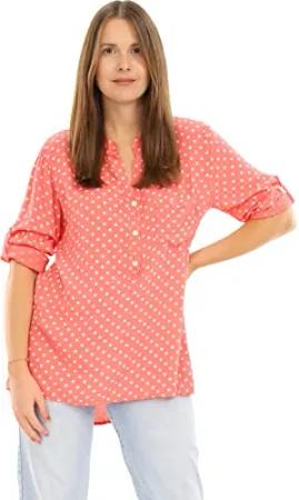 Malito Damen Bluse mit Punkten | Tunika mit ¾ Armen | Blusenshirt auch Langarm tragbar | Elegant - Shirt 3419 (Coral)